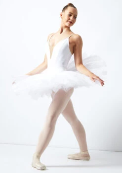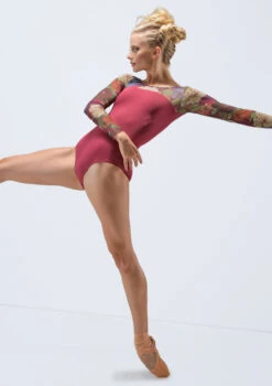 Exude grace in this delicate mesh leotard from Ballet Rosa. An open back is brought to life by a unique embroidered design which swirls the back and along the arms over delicate mesh. The pinch front compliments the elegance of the design and creates a flattering figure for any dancer.