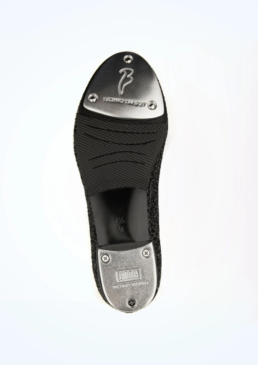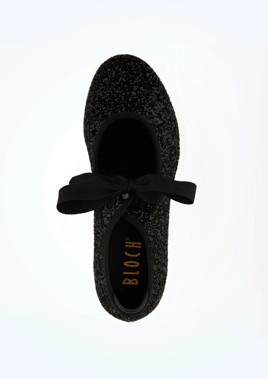Let your tap performance sparkle with this low heel tap shoe from Bloch. Any young dancer will adore the all-over glitter upper. With a grosgrain bow fastening covering an elastic strap, this shoe provides comfort and flexibility without compromising style. The heightened leather heel cup ensures a secure fit with minimal rubbing.