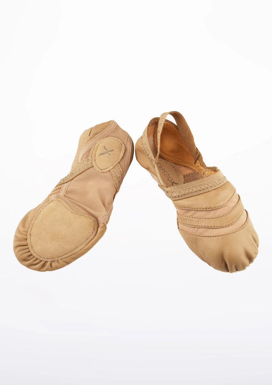 Fantastic dance shoe suitable for contemporary, jazz, modern and ballet. This Capezio shoe has a leather and Lycra mix upper, with a sculpted, seamless, powermesh arch. The contoured cushioned suede sole patches add comfort, and the plush elastic topline keeps the shoe in place. The back elastic is adjustable.