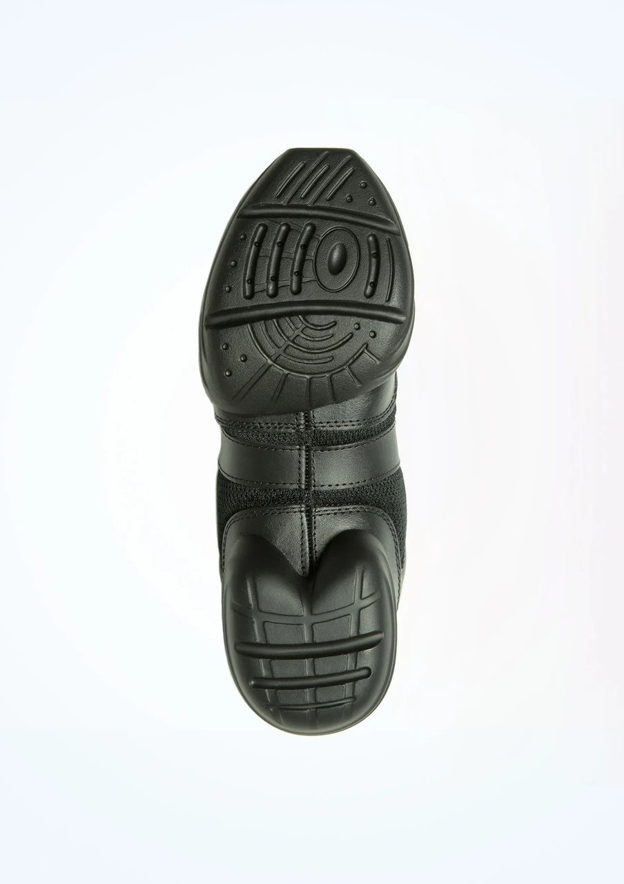 A split sole sneaker from Capezio has a square boxed toe for easier toe stands, a spin spot for easier, smoother turns and an extended heel for protection and for smooth heel rolls. The leather arch is reinforced with nylon for flexibility and support.