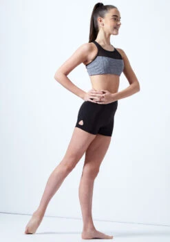 We’re loving this racerback high neck bra top from Capezio. Stay secure and supported thanks to the combination of the high neck style and built in cups. This sporty style is perfect for dance and other fitness classes!