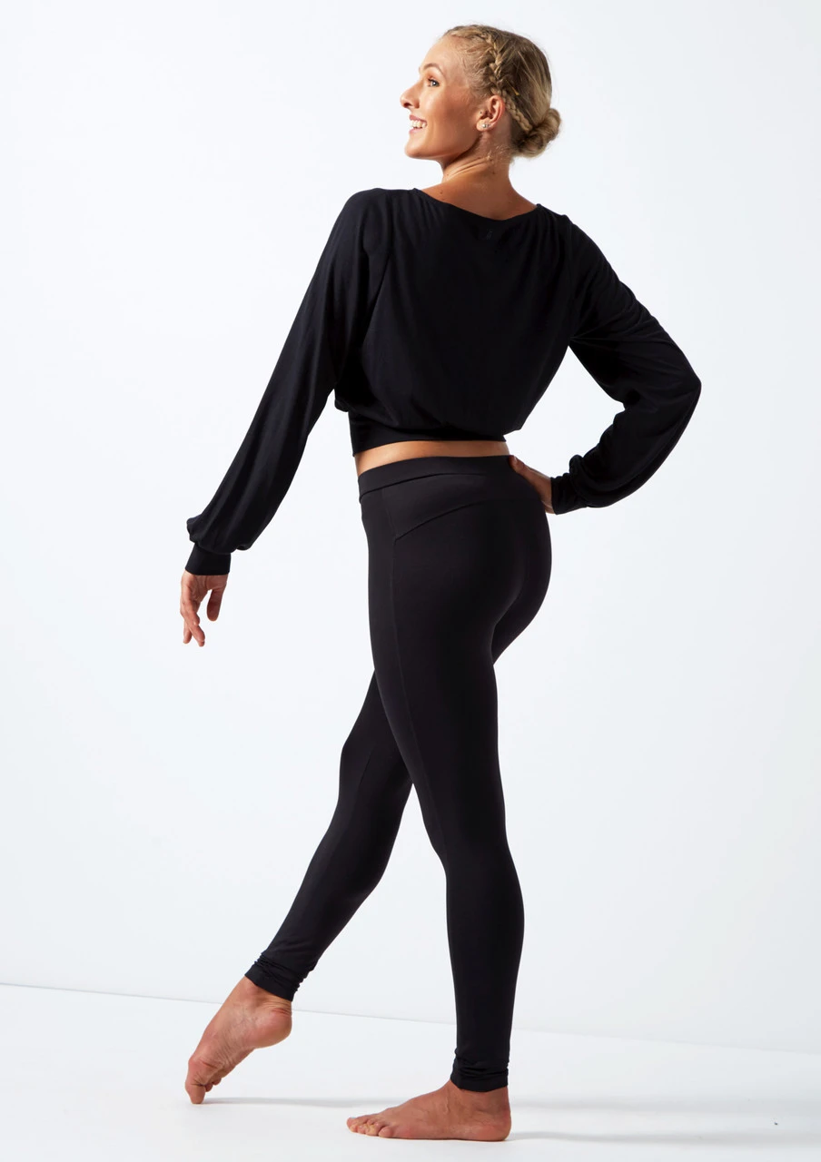 Energise your warm up with this loose-fitting long sleeve dance top. The loose style allows for comfort and spacious fit whilst the cuffed sleeves and waistband give a flattering look. The wide neckline means you can put on and take off the top without touching your hair or make-up.