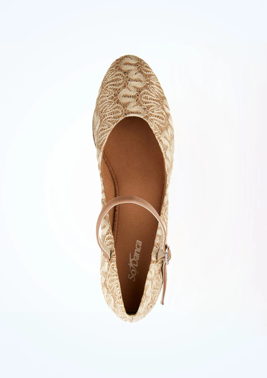 So Danca’s Dinah Dance Shoes are ideal for beginners thanks to the low 1.5″ heel. A smooth glitter upper sparkles as you dance with material that won’t snag your tights or dancewear. Soft suede soles create ease for movement across the floor as you dance. Stay comfortable thanks to the cushioned lining surrounding your feet.
