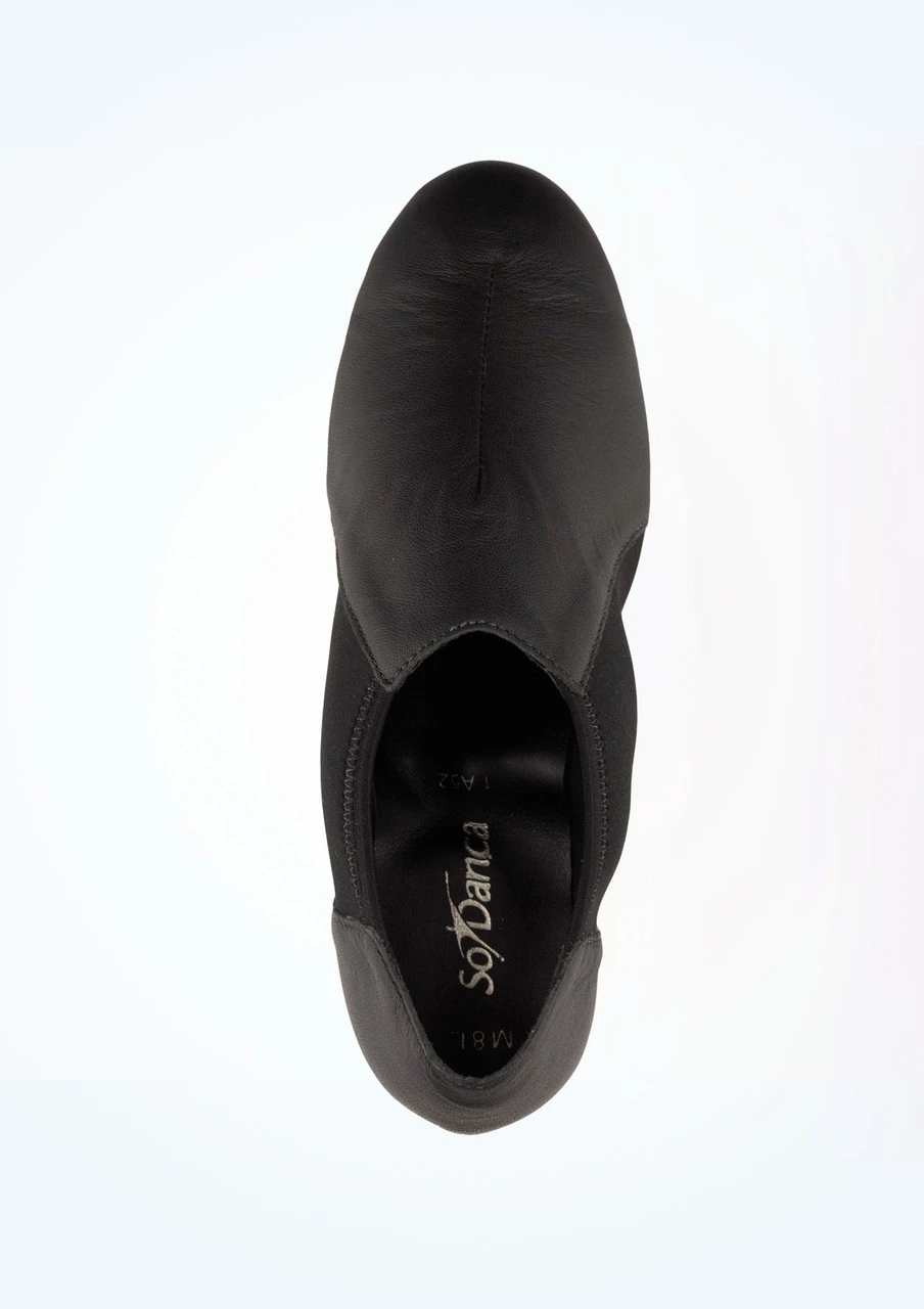 New tap shoes from So Danca, which slip-on and have a great fit! The hard toe box and heel taps give excellent sound quality, and the split sole offers flexibility. Heard wearing leather material, with a stretch Neoprene panel under the arch, giving your foot a great look and feel.